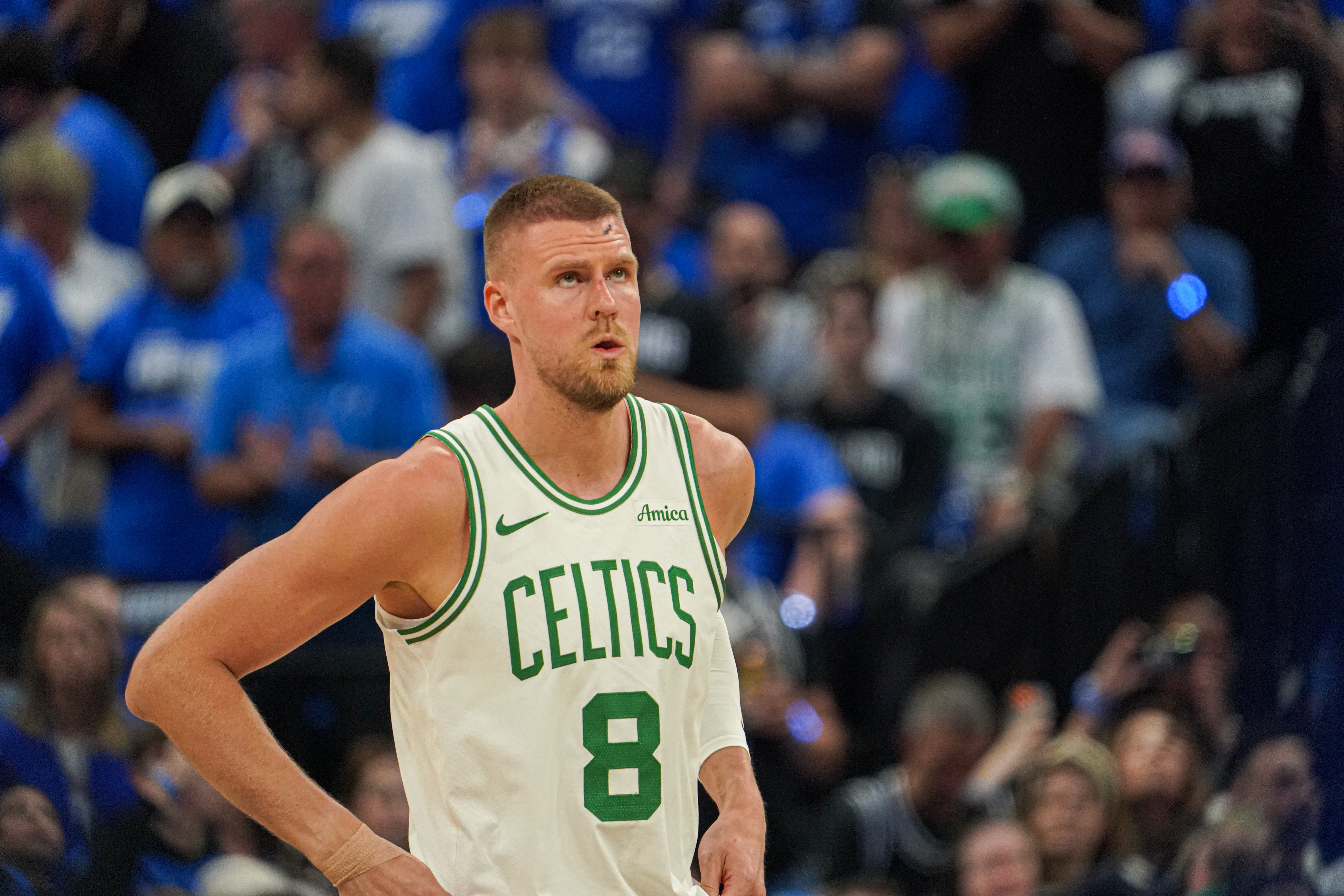 波尔津吉斯本季受到不明病毒侵袭,常规赛场均19.5分、三分球命中率41.2%,季后赛场均7.7分、三分球命中率15.4%,判若两人,一度从首发被降为替补甚至跌出了轮换。